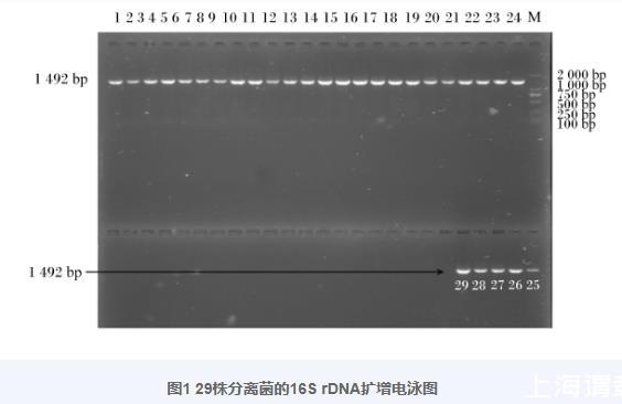 圖1 29株分離菌的16S rDNA擴增電泳圖